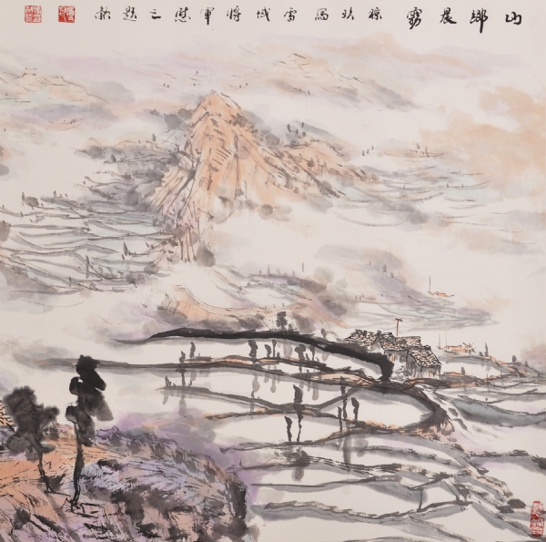 作品编号: F00508 作品名称: 山乡晨雾 国画